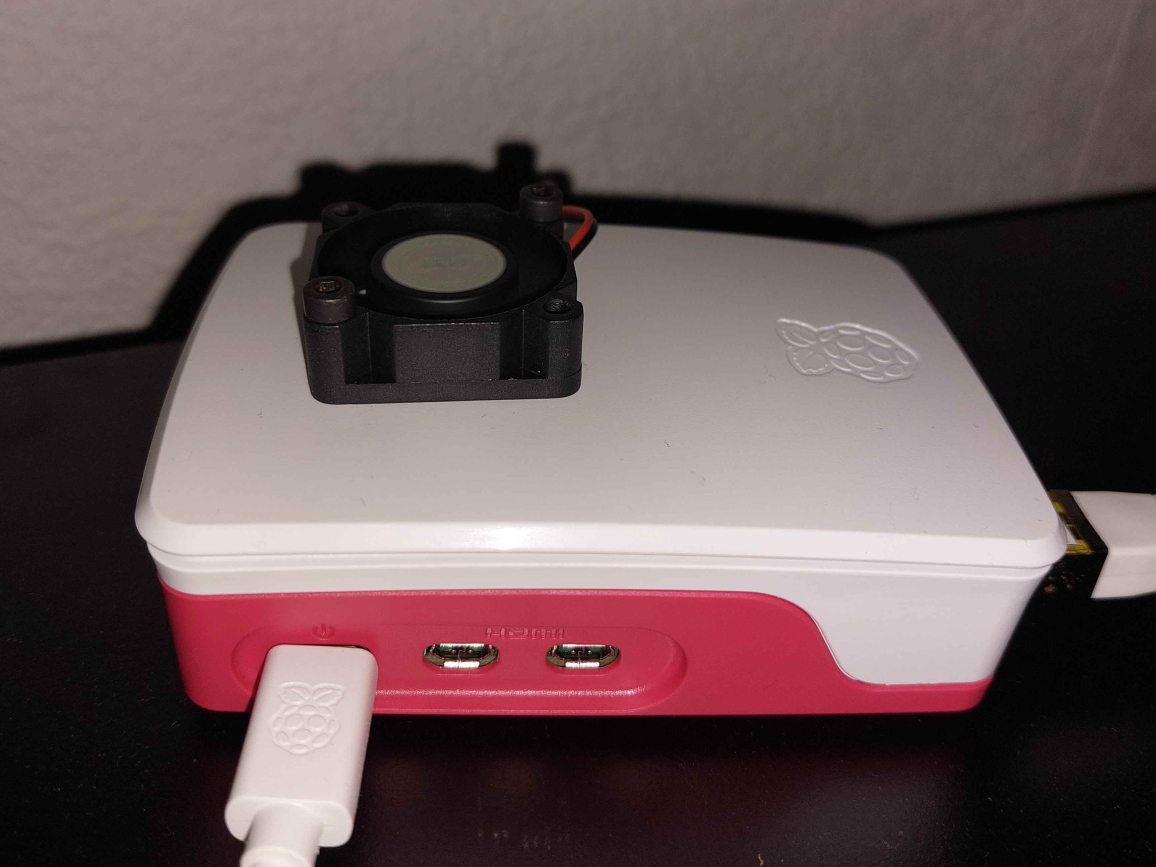 Aber Moment, all diese Power erzeugt natürlich Wärme. Und weil ich meinen Pi 5 nicht als Miniatur-Grill missbrauchen wollte, musste eine Lösung her. Der aktive Kühler von Raspberry war ein guter Anfang, aber für mich nicht genug. Also habe ich kurzerhand das originale rot-weiße Gehäuse modifiziert. Mit Bohrmaschine und viel Mut (okay, und etwas zitternden Händen) habe ich eine Öffnung für einen zusätzlichen 30mm Scorpion Hi-Speed Lüfter geschaffen.